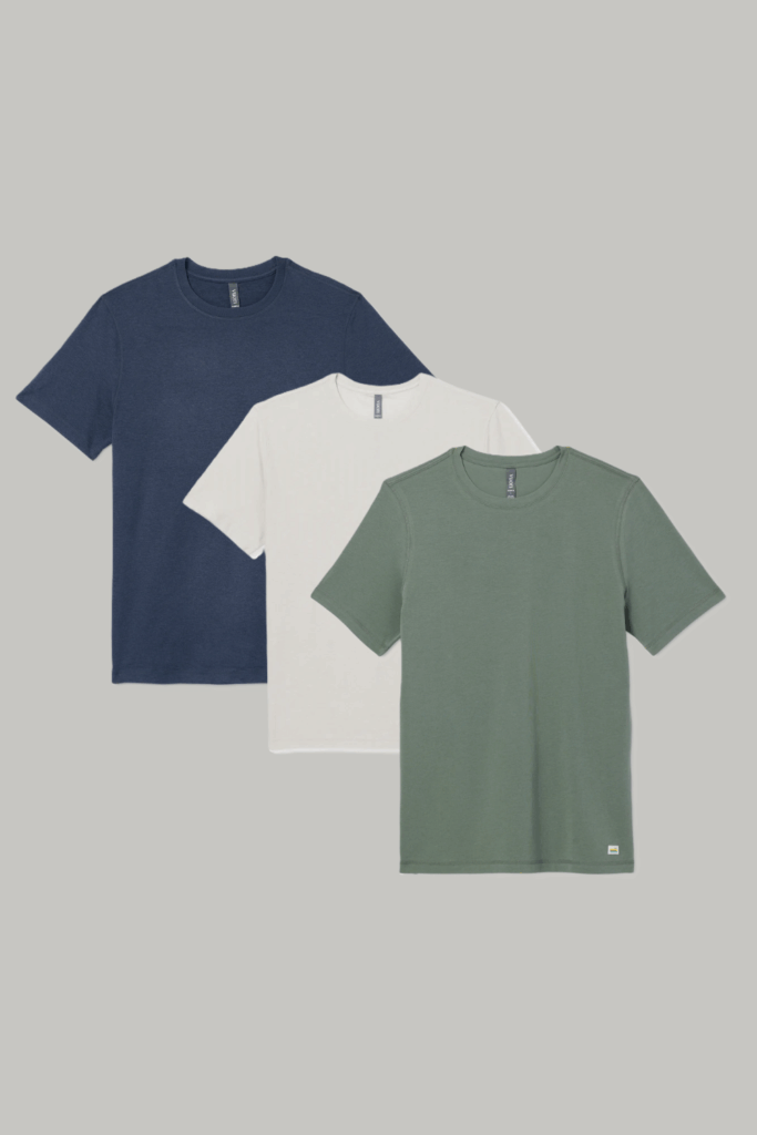 I bring a rotation of about five neutral, easy-to-pair tees, and usually a couple of them are the Short Sleeve Ponto Performance Tee in different colors.