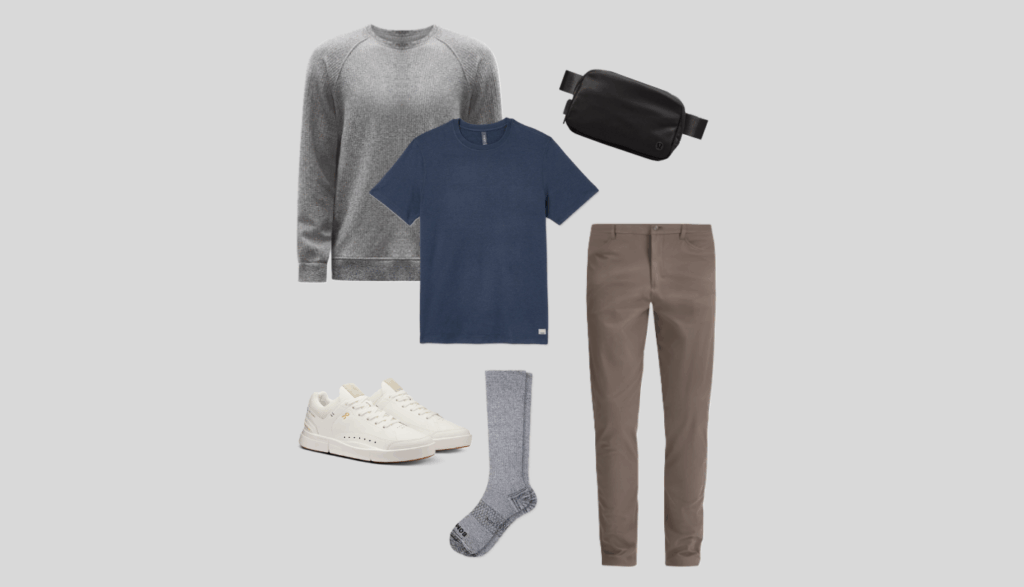 My go-to travel staple is a pair of Lululemon ABC pants. If you know, you know. They look polished enough to pass for “real pants,” but they’re incredibly soft, stretchy, and forgiving—basically elevated sweatpants in disguise. The four-way stretch makes airport sprints painless, and the lightweight fabric keeps me comfortable whether the cabin is freezing or oddly warm. They move with you, not against you, which is exactly what you want at 37,000 feet.